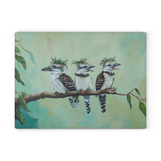 "He Ate His Mealworm Necklace Again!" Funny Kookaburra Glass Cutting Board