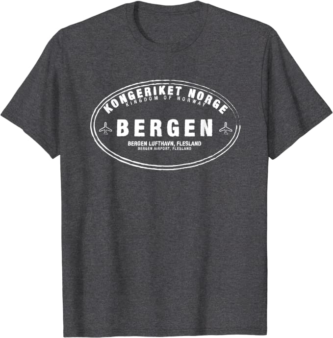 If you or your friends traveled to Bergen or wandered in other regions in Norway for a vacation, this passport stamp apparel makes a great retro Christmas holiday or birthday souvenir gift. Wear this passport sticker garment yourself at the BGO Bergen Flesland Airport or gift as a present to other vacation tour travelers visiting fjords, glaciers and scenic villages