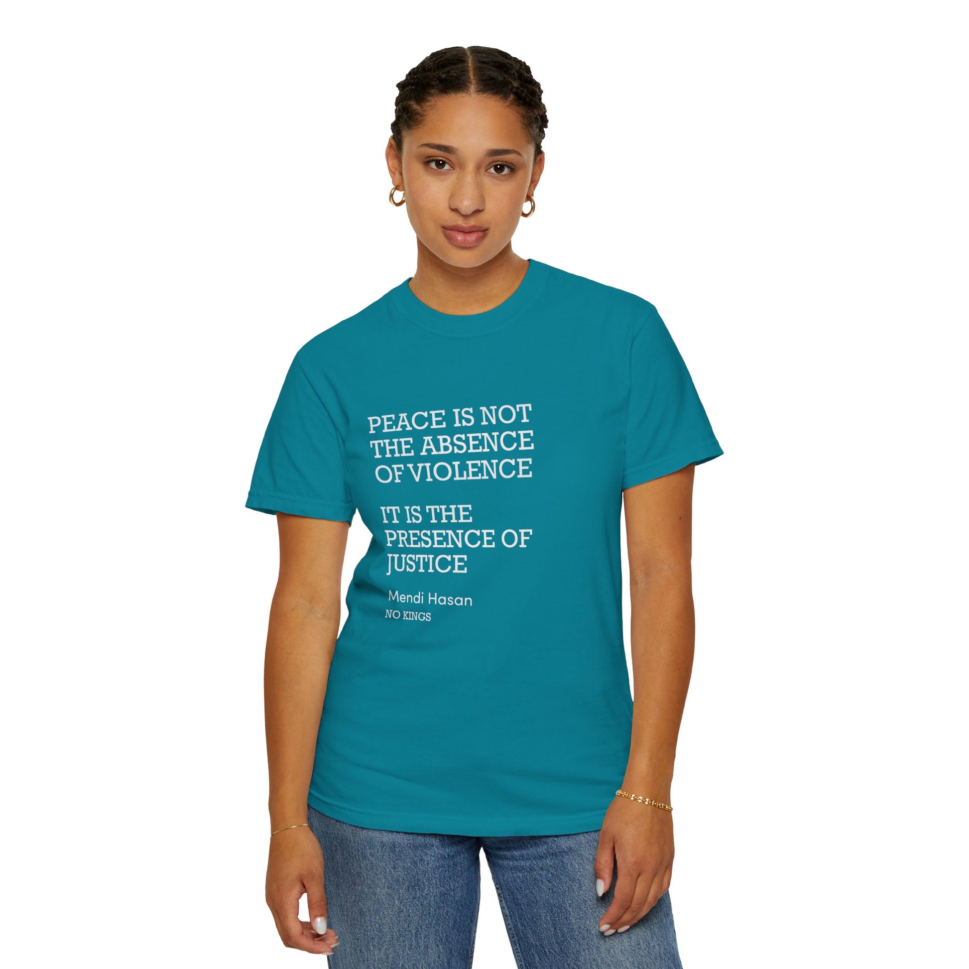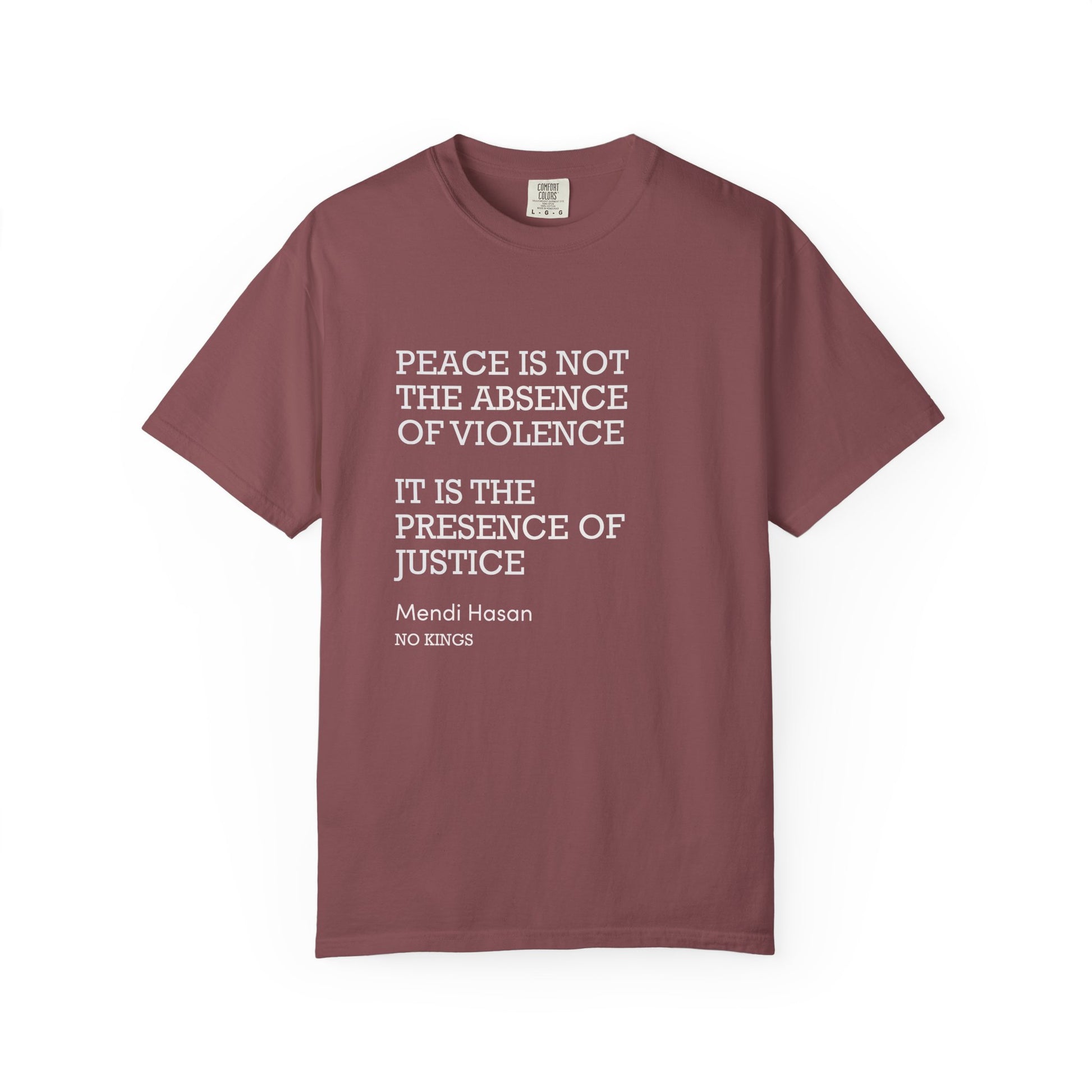 "Peace is not the absence of violence...It is the presence of justice" Mendi Hasan No Kings Speech, Activists Unisex T-Shirt, Comfort Colors 1717